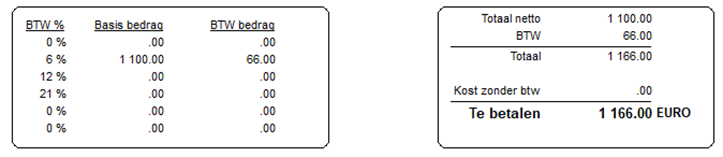 Voorbeeld “5000 kg Eiwitbrok aan 0.22 € è 1100 € + 66 € BTW = 1166 €