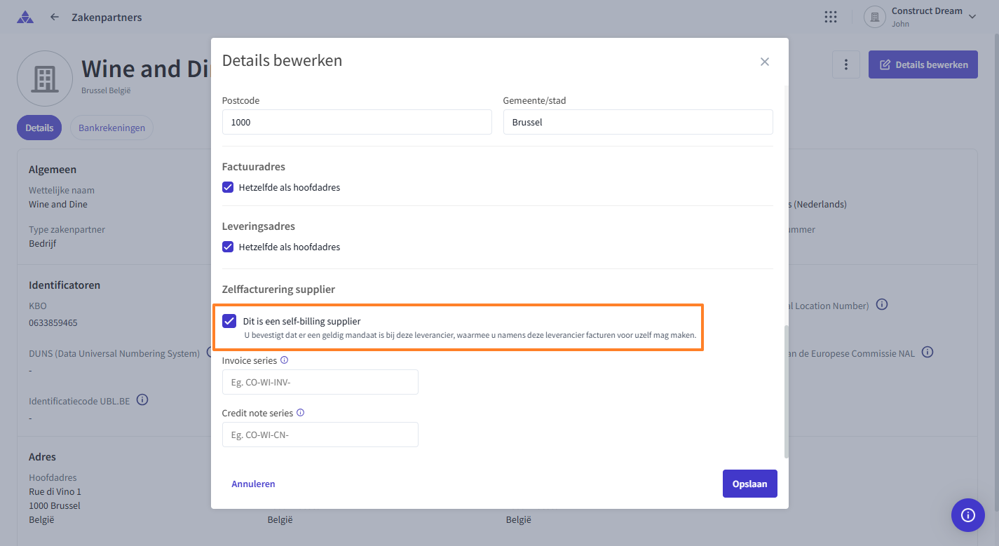 Zo worden ook de instellingen voor self-billing correct toegepast.