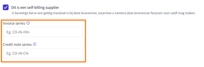 De eerste keer stel je hierbij ook een aparte nummeringsreeks in voor self-billing.