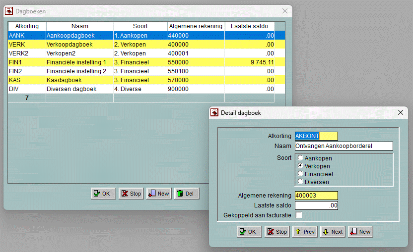 Je maakt best een apart dagboek aan om deze aankoopborderellen te ontvangen: